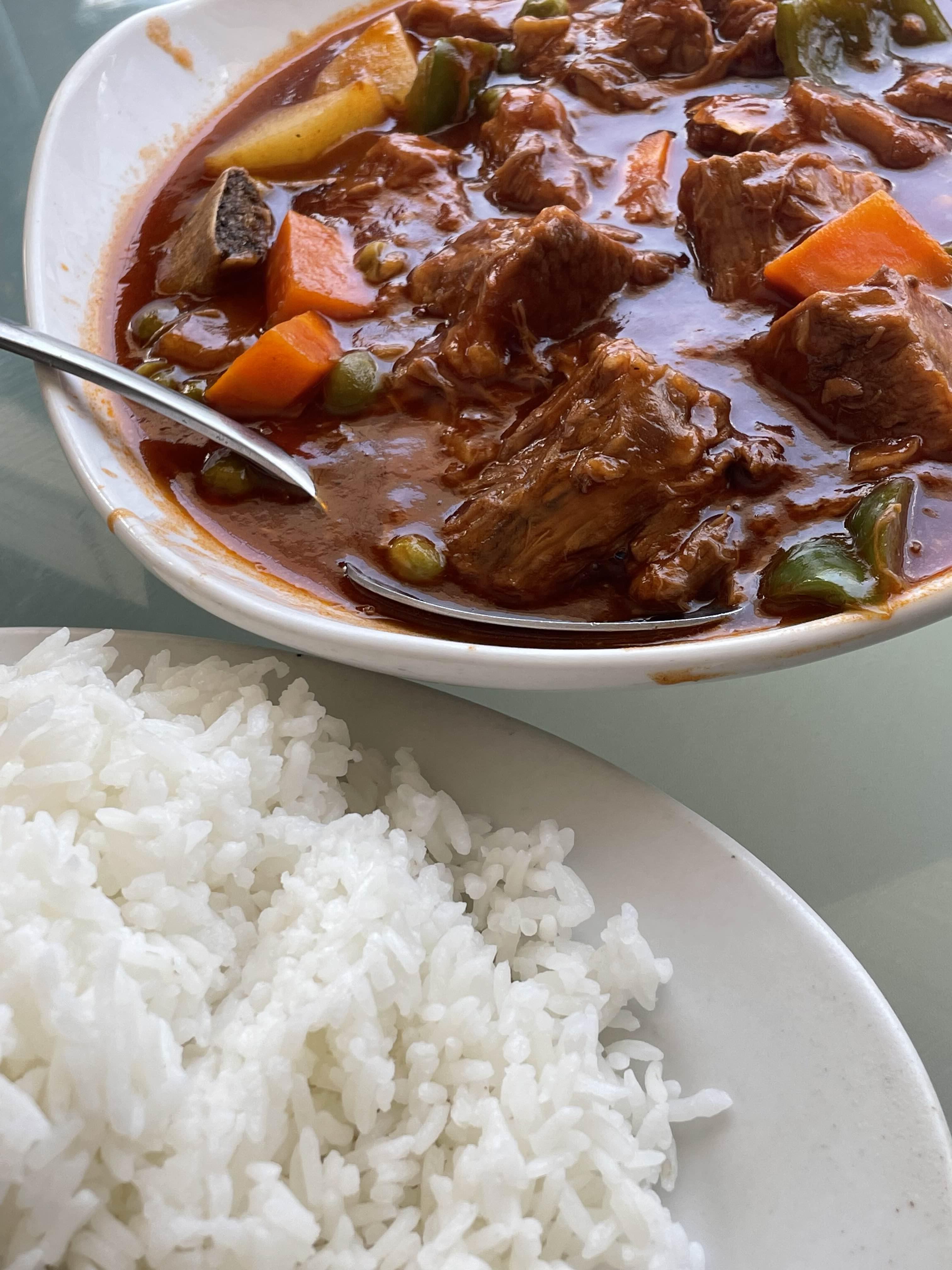 음식은 양념된 고기에 흰쌀밥이 나왔는데 고기 소스레