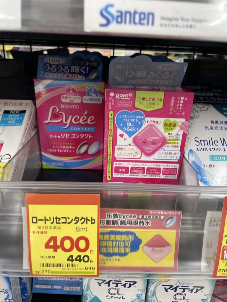 저는 렌즈를 껴서 분홍색 리쎄와 저 이름은 모르지만.. ㅎ 218엔 짜리 안약을 추천 받아서 사왔어요