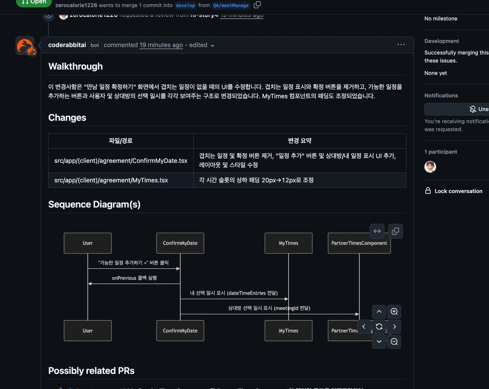 코드를 하나하나 따라가지 않아도 변경 목적과 흐름을 먼저 이해할 수 있었습니다.